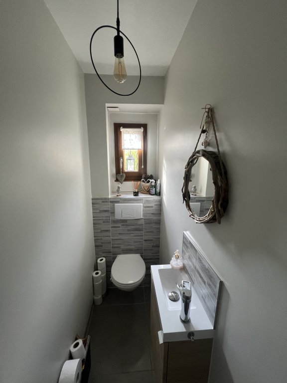 - A l'étage : un dégagement, pouvant servir de bureau, desservant deux chambres dont une de plus de 20m2 pouvant être aménagée en suite parentale ou séparée en deux chambres et une belle salle d'eau avec wc.