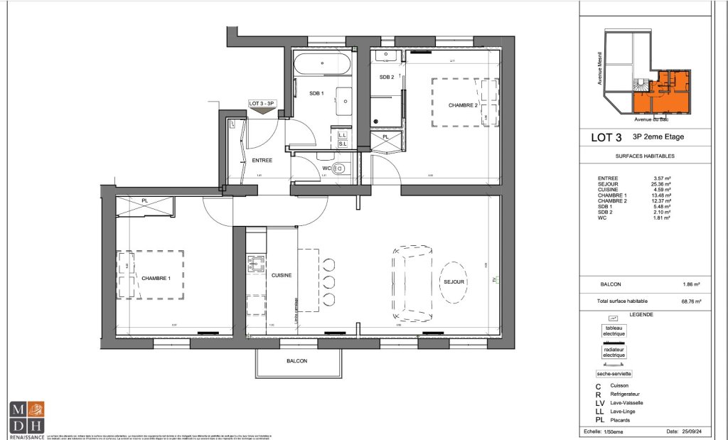 APPARTEMENT T3 NEUF A VENDRE - ST MAUR DES FOSSES - 68.76 m2 - 550 140 €